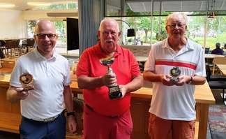 ![]() Pronssi Matti Mäkelä, MEHUgolfari Kai Lager ja hopeaa Markku Salomaa. |