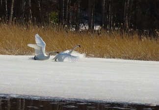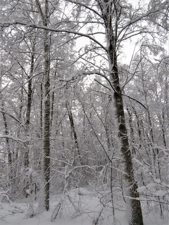 ![]() Talitiainen. Kuva Mirja Lehtonen | ![]() Lumista tervaleppäluhtaa. Kuva Mirja Lehtonen |