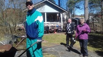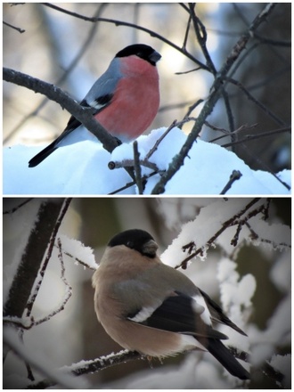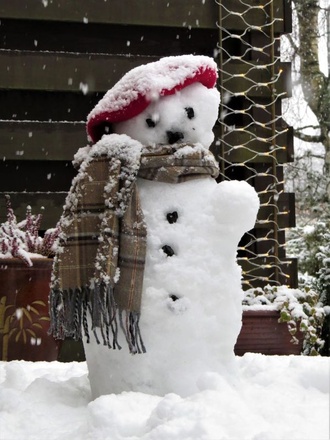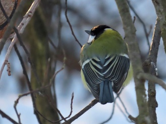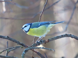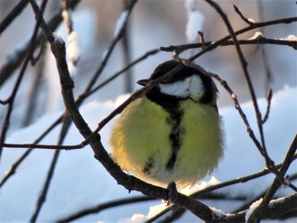 ![]() Lumiukko sateessa. Kuva Mirja Lehtonen | ![]() Sinitiainen. Kuva Mirja Lehtonen |