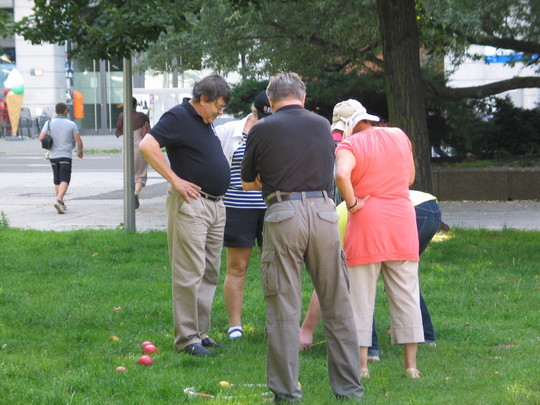 Lauantai 20.8.2011 Aamiaisen jälkeen oli ohjelmassa klo 10.30 Mehun perinteinen Boccia-turnaus lähipuistossa. Turnaukseen otti osaa yhdeksäntoista Mehulaista, joista moni oli ensikertalaisia. Pelaajat arvottiin kahteen lohkoon 2-3 mehulaista/joukkue. Arvonnan ja pelin päätuomarin tehtävät hoiti Leksa tyylikkäästi. |