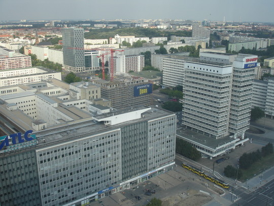 ![]() Iltapäivällä klo 14.30 oli ohjelmassamme käynti TV-torni Fernsehturmin Panoraama-baariin. Tilaisuuteen osallistui 47 rohkeaa Mehulaista. Hissi näköalatasanteelle 207 m korkeuteen taittui joustavasti pikahissillä 10 sekunnissa. Näköalatasanteelta oli loistavat näköalat yli Berliinin suurkaupungin. Panoraama-baarissa nautittiin virkistäviä Mehu-juomia. |