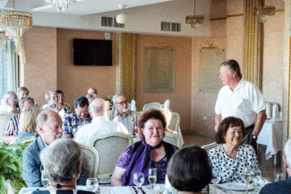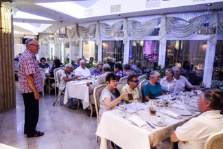 Puheenjohtajan tervehdys illallisessa.