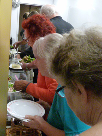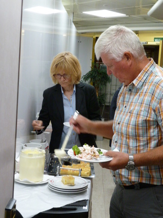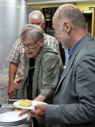 Leppoisaa jutustelua, rauhallista jonotusta sekä laivan antimien nautiskelua.